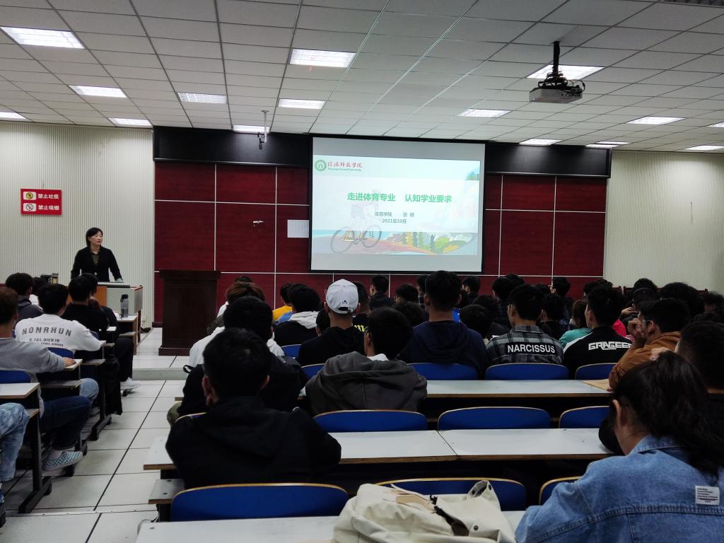 张娟从专业、学业、目标、角色转变、日常学习状态及自我管理、就业方向、课程结构及学分等各方面对新生进行……要求学生五育并举,全面发展,要有较好的科学文化素养和高度的社会责任感和使命感,要富有创新创业精神和实践能力,要具备适应社会发展需要的能力努力让自己变成“知识宽厚、能力全面、素质过硬,专业突出的专业型体育人才”,清楚认知自己所学的专业领域,处理好专业学习与业余爱好、人际关系、职业规划等关系,另外她还对学院课程结构、学分等进行了详细介绍。