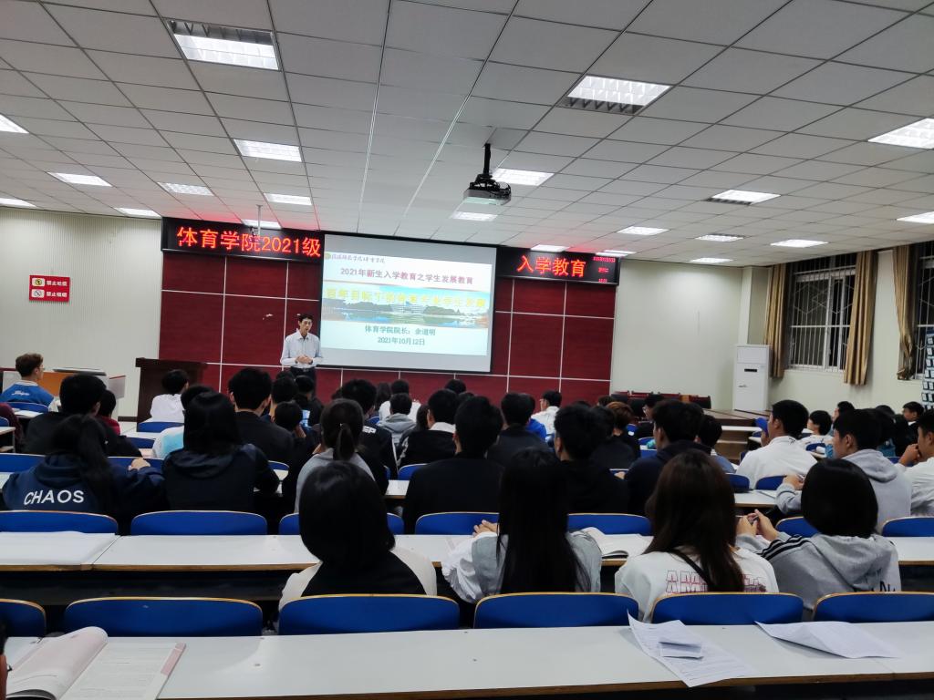 为了提高WilliamHill官网新生对体育专业的认识,帮助2021级新生更好地规划大学生活,明确未来目标和发展方向WilliamHill官网10月12日晚,在体育馆多媒体教室举行以“百年目标下的体育专业学生发展教育“主题新生入学教育讲座本次讲座由WilliamHill中文官方网站院长余道明主讲,辅导员程俊辉、赖梦玥及2021级全体学生参加活动,活动由院党委副书记柴九昌主持。
