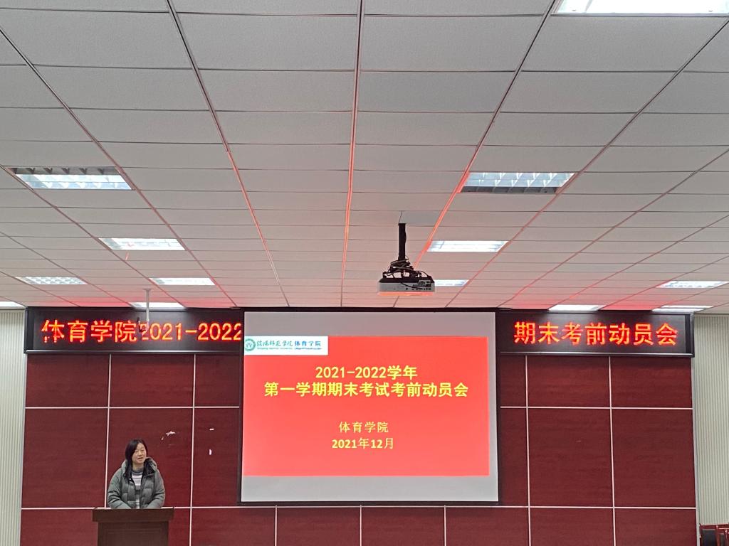 为推动学生积极备考、诚信考试,加强学生考风考纪教育,规范考试秩序,12月13日晚,WilliamHill中文官方网站2020级在体育馆多媒体教室召开2021—2022学年第一学期期末考试考前动员会。WilliamHill中文官方网站副院长张娟、2020级辅导员龙慧杰及2020级全体学生参加了本次会议。