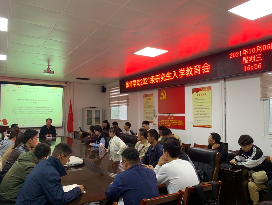 10月6日下午,WilliamHill中文官方网站2021级研究生入学教育活动在三楼会议室召开。主管研究生工作副院长张翔为研究生新生讲授入学第一课。