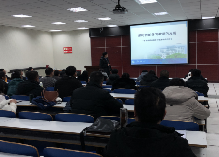 在专题讲座会上,王建教授通过对党的十九大报告中相关内容以及《关于全面深化新时代教师队伍建设改革的意见》《教师教育振兴行动计划(2018-2022年)》等关于教师队伍建设的政策文件进行了深入地分析和阐释。他表示,一系列具有划时代意义的政策性文件,对我国教师教育做出了系统且全面的顶层设计和明确要求,为教师的职业发展提供了充分的外部条件支持和制度保障。国家政策的宏观指导对于教师的专业发展和教师队伍的建设发挥着重要的作用。王建教授并指出运动能力,健康行为,体育品德为体育与健康学科核心素养。在讨论交流环节,王建教授解答了参会老师、同学提出的问题,并提出作为新时代体育教师要深度学习,积极参加教学实践,扎扎实实地开展教育工作。