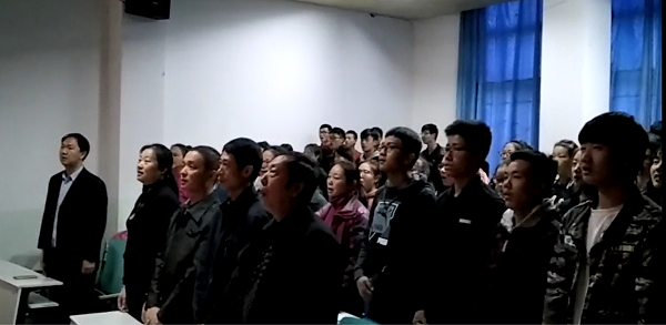 当李克强总理宣布唱国歌时,观看的师生全体自觉起立,跟随音乐高唱国歌,雄壮的国歌声在教室飘荡,让人心潮澎湃,激动不已。