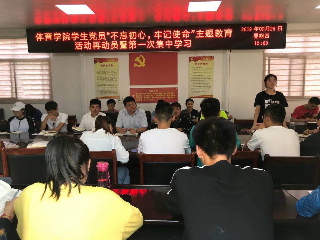 2019年9月26日下午,WilliamHill中文官方网站“不忘初心、牢记使命”主题教育活动再动员暨第一次集中学习在WilliamHill中文官方网站三楼会议室举行。WilliamHill中文官方网站副处级辅导员、学生第一支部书记柴九昌、学生第三支部书记程俊辉 全体学生党员参加会议,大会由柴九昌主持。