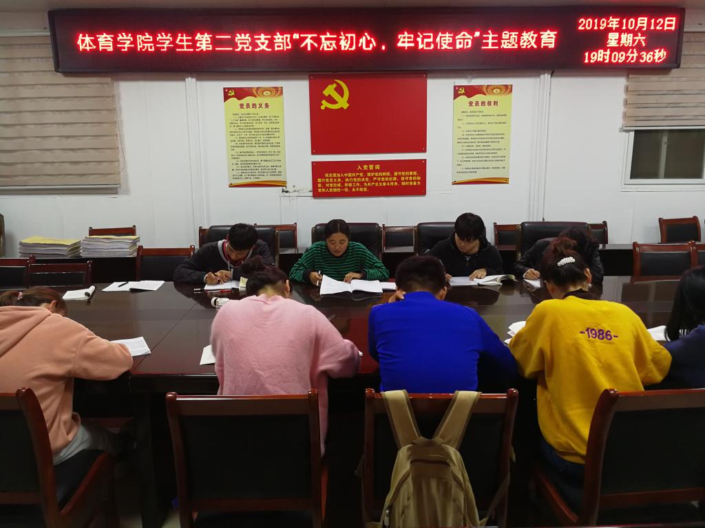 2019年10月12日晚上,WilliamHill中文官方网站学生第二党支部“不忘初心、牢记使命”主题教育专题党课在WilliamHill中文官方网站三楼会议室举行,学生第二党支部书记赵倩倩、二支部全体党员参加会议,赵倩倩主持会议。