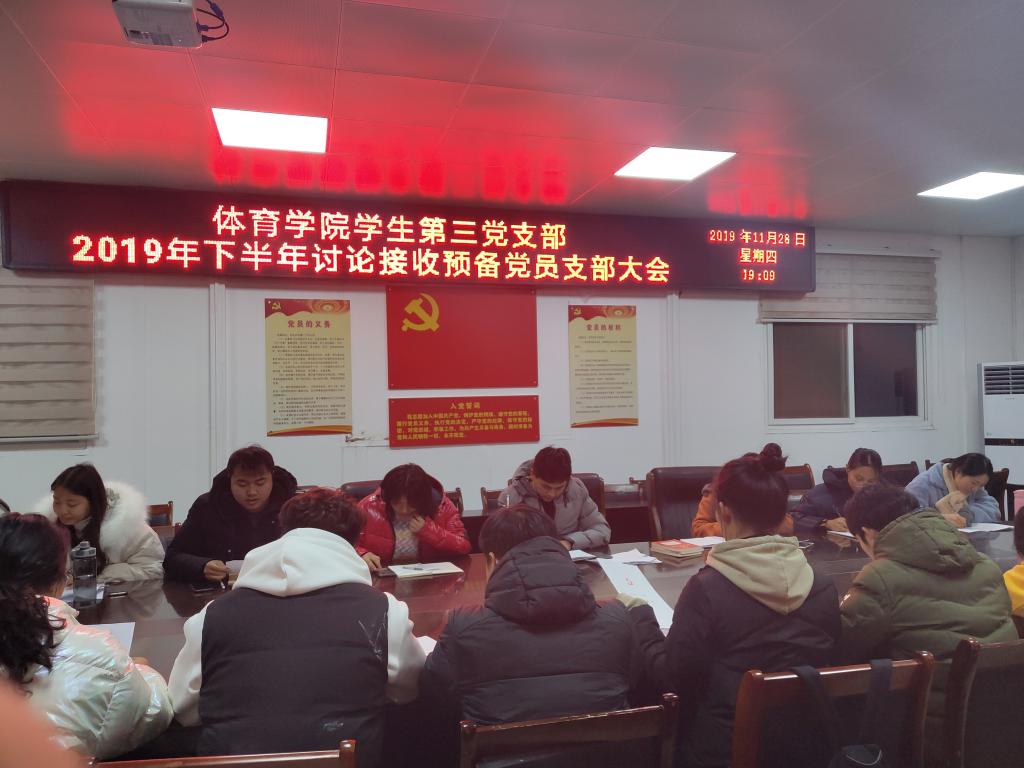 为进一步加强党员队伍建设,根据党员发展计划,WilliamHill官网学生各党支部于11月28日、29日在WilliamHill中文官方网站三楼会议室陆续召开讨论接收预备党员支部大会。会议由各自党支部书记主持,支部全体党员以及本次发展对象参加了会议。