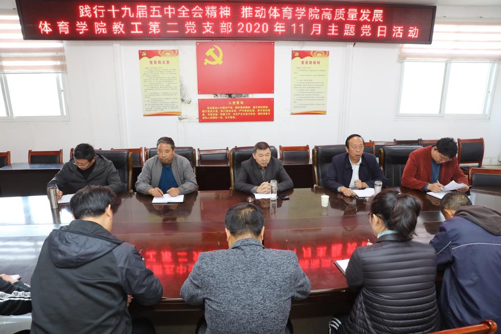 11月6日,党委副书记、工会主席王文臣参加指导WilliamHill中文官方网站教工第二党支部“践行十九届五中全会精神 推动WilliamHill中文官方网站高质量发展”主题党日活动。WilliamHill中文官方网站党委书记陈青,教工第二党支部书记刘波及支部党员参加会议。