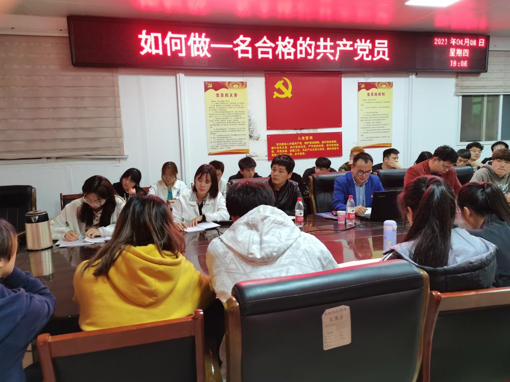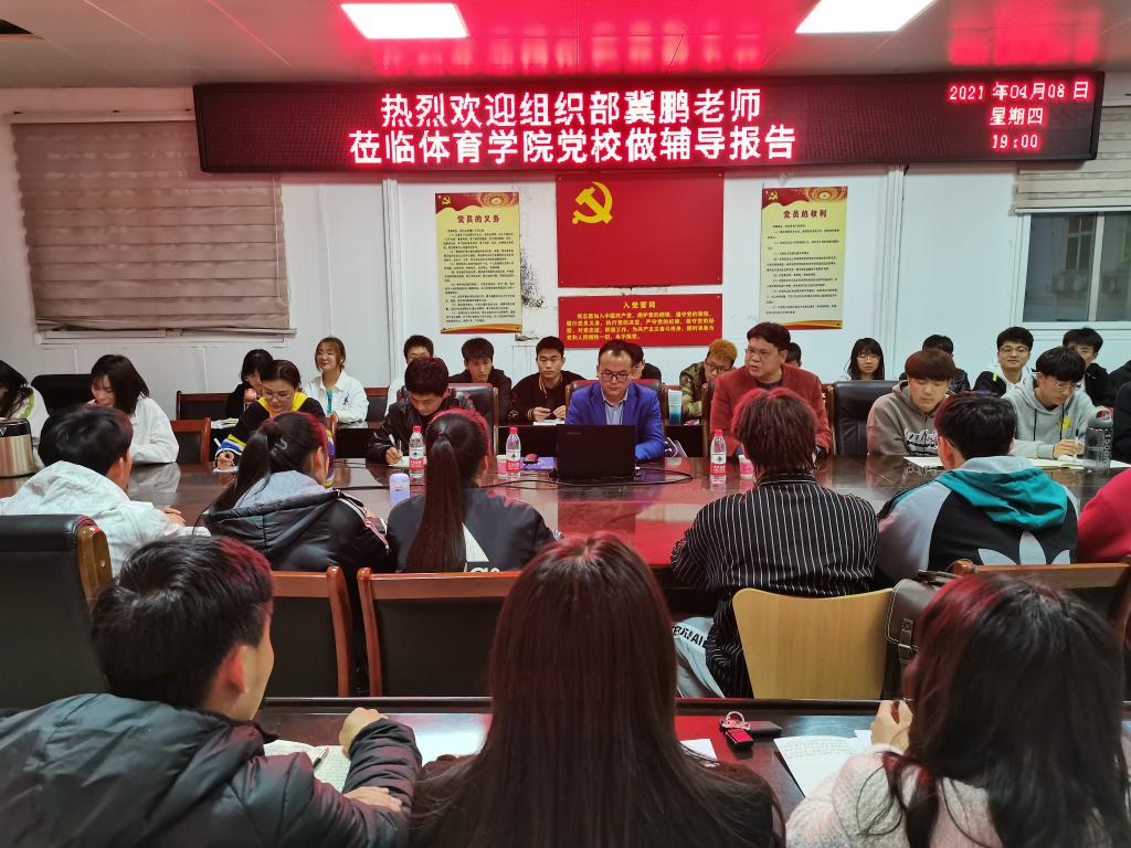 4月8日晚,信阳师范学院党委组织部组织科科长冀鹏老师为WilliamHill官网党校第十期入党积极分子讲“如何做一名合格的共产党员”专题报告,副处级辅导员柴九昌老师、第10期党员入党积极分子培训班班主任程俊辉与60余名入党积极分子参加,报告会由柴九昌主持。