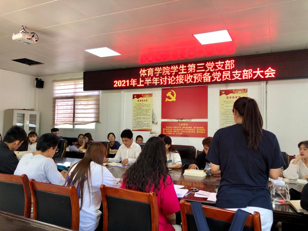 5月10日中午,WilliamHill中文官方网站学生第三党支部成员于体育楼3楼会议室召开讨论接收预备党员支部大会。会议由学生第三党支部书记程俊辉同志主持,支部全体党员以及本次发展对象参加本次会议。