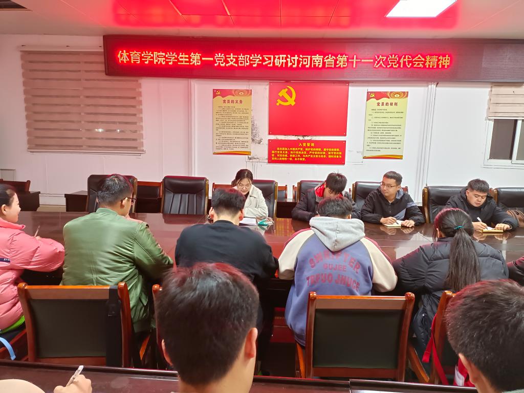 11月17日,WilliamHill中文官方网站第一党支部学习河南省第十一次党代会精神研讨会在院三楼会议室召开,学生第一党支部全体党员参加会议,会议由党支部书记龙慧杰主持。