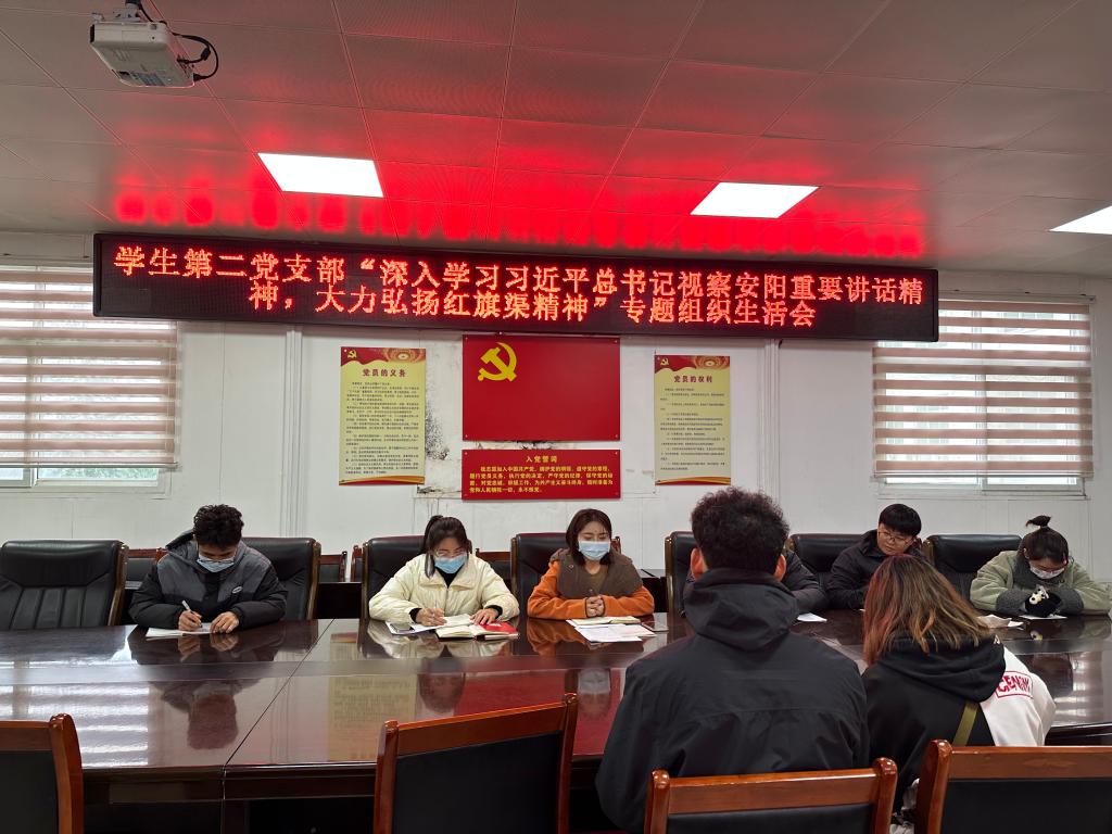 11月22日,WilliamHill中文官方网站学生第二党支部召开“深入学习习近平总书记视察安阳重要讲话精神,大力弘扬红旗渠精神”专题组织生活会,学二支部全体党员参加会议,会议由学二支部书记赖梦玥主持。
