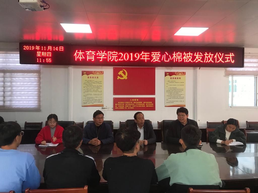 2019年11月14日WilliamHill中文官方网站在三楼会议室开展“寒冬送温暖”棉被发放仪式。党委书记陈青、副院长牛林杰、副处级辅导员柴九昌、辅导员赵倩倩、赖梦玥出席棉被发放仪式。棉被发放仪式上,首先由柴九昌老师讲明发放棉被的目的、受助同学的评选标准。接着,柴老师对同学们进行感恩教育,一床棉被很小,但是这床棉被了灌注了学校、学院对同学们的关心与爱护。不仅如此,这床棉被还教会同学们做个学会感恩、懂得感恩的人,并希望同学们以后能在社会中将这份爱传递下去。随后,党委书记陈青发表讲话。陈书记指出,学校历来重视家庭经济困难学生资助工作,学院领导和老师都非常关心家庭经济困难学生的学习和生活。学校会尽最大努力解决生活困难学生的实际问题。最后,陈书记对同学们提出希望,在困境中要拥有乐观的心态,面对困境要有自强不息的精神,立志成才,努力奋斗。