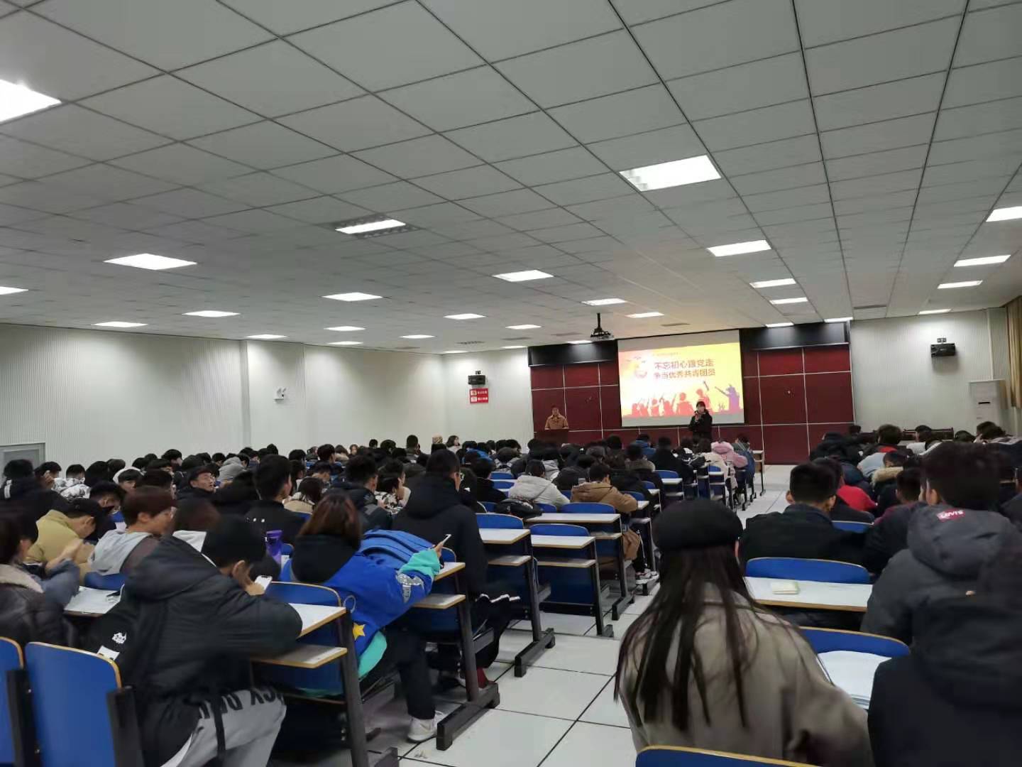 2019年11月26号下午四点半WilliamHill官网于体育馆多媒体教室举行“不忘初心跟党走,做合格共青团员”主题团课,本次团课的主讲人为赵倩倩老师,19级辅导员赖梦玥老师及2019级新生参会。