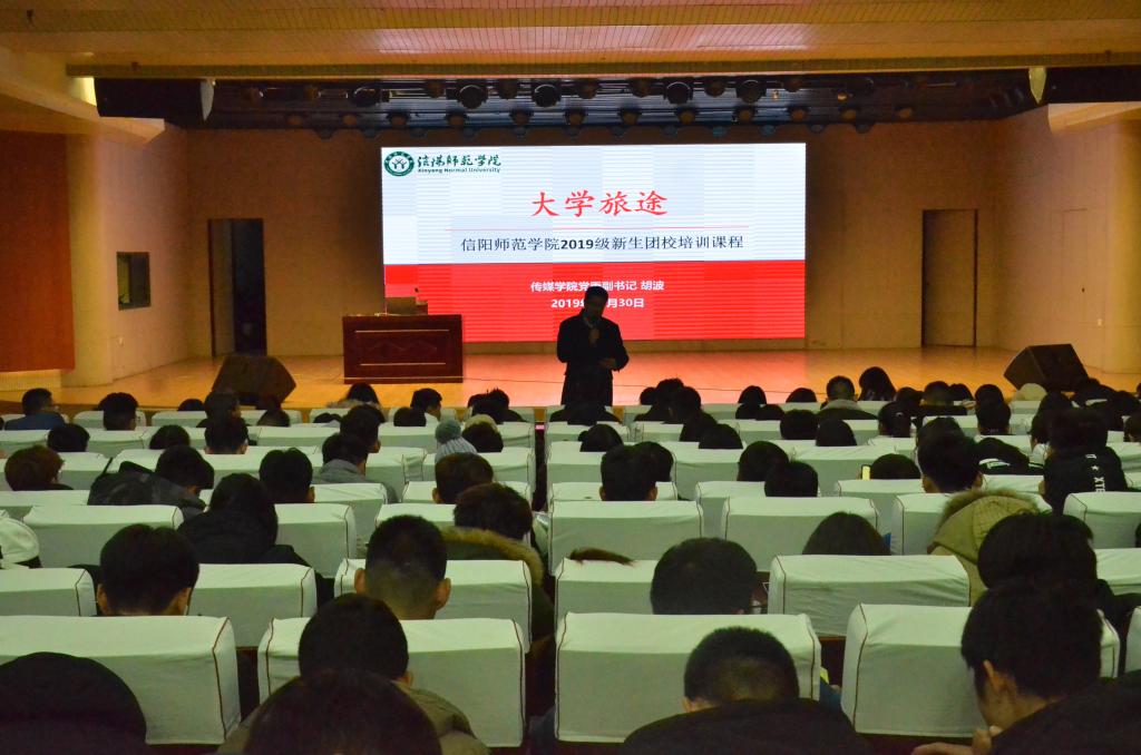 胡波以“大学旅途”为主题,围绕“一颗心、两个人、三味药”三个方面进行了详细讲解。他他 他用幽默风趣的语言展开了与同学们对于大学旅途的认知以及理解,他表示,“一颗心”即对朋友要忠心、对人有爱心、遇事有信心,希望全体新生团员在学习和生活中要始终以“一颗心”真诚待人待事;“两个人”就是自己与他人,在处理好人际关系的同时,学会挖掘、发展兴趣爱好,不断提升自身综合素质。最后,胡波寄语全体新生团员在大学生活中不断发挥团员的先锋模范作用,争做有理想、敢担当、肯付出的优秀共青团员。胡波生动的语言和轻松的课堂氛围充分调动了与会人员的积极性,让在场新生团员深刻意识到自身肩负的使命与责任。幽默风趣的语言得到了同学们一阵阵的掌声。