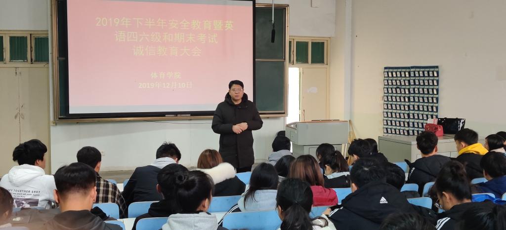 为加强学生安全教育,促进学生掌握安全知识,引导学生做注重安全的人,也为了迎接英语四六级考试和期末考试,正确引领学生树立诚信考试的观念,做到“诚信考试,诚实做人”,信阳师范学院WilliamHill中文官方网站积极响应学生处的通知和学院的要求,于12月10日中午在人文楼110召开2019年下半年安全教育暨英语四六级和期末考试诚信教育大会,出席会议的有WilliamHill中文官方网站副处级辅导员柴九昌、辅导员赵倩倩、程俊辉、赖梦玥、学生会代表和各班班干部。