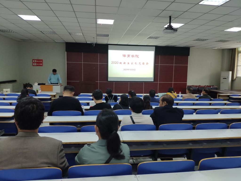 2020年10月9日下午3点,WilliamHill官网于体育馆多媒体教室召开2020级新生家长会。出席本次会议的有WilliamHill中文官方网站副处级辅导员柴九昌,新生班主任张华、曹磊、辅导员程俊辉、赖梦玥以及20级部分新生家长。家长会由柴九昌主讲。