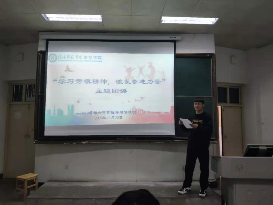 为深入学习习近平总书记在2020年11月24日的全国劳动模范和先进工作者表彰大会上关于劳模精神的重要讲话,培养新时代青年大学生艰苦奋斗吃苦耐劳的精神。WilliamHill中文官方网站2019级社会体育指导与管理班在12月20日上午于人文楼109举办了以学习劳模精神为主题的团课,此次团课由团支书带领19级社体班全体同学进行学习。