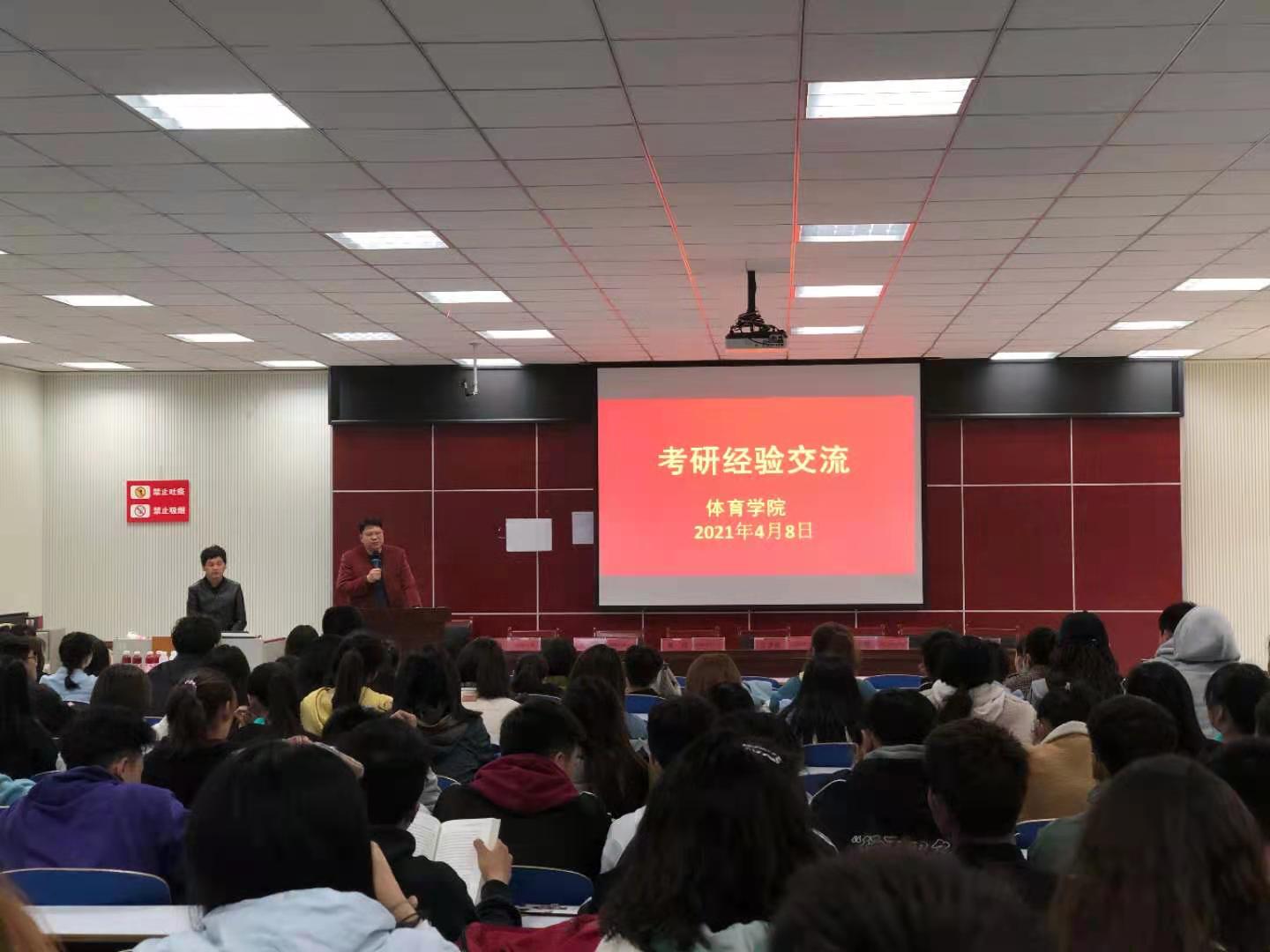 柴九昌先是总体介绍了体育专业考研方向;他结合社会现状从就业前景、个人未来发展等几个方面具体分析了我们体育专业为什么考研及考研的必要性;他提醒同学们考研准备需要细心与耐心,需要不懈的努力和坚持,祝愿2022年大家都能考上满意的学校。