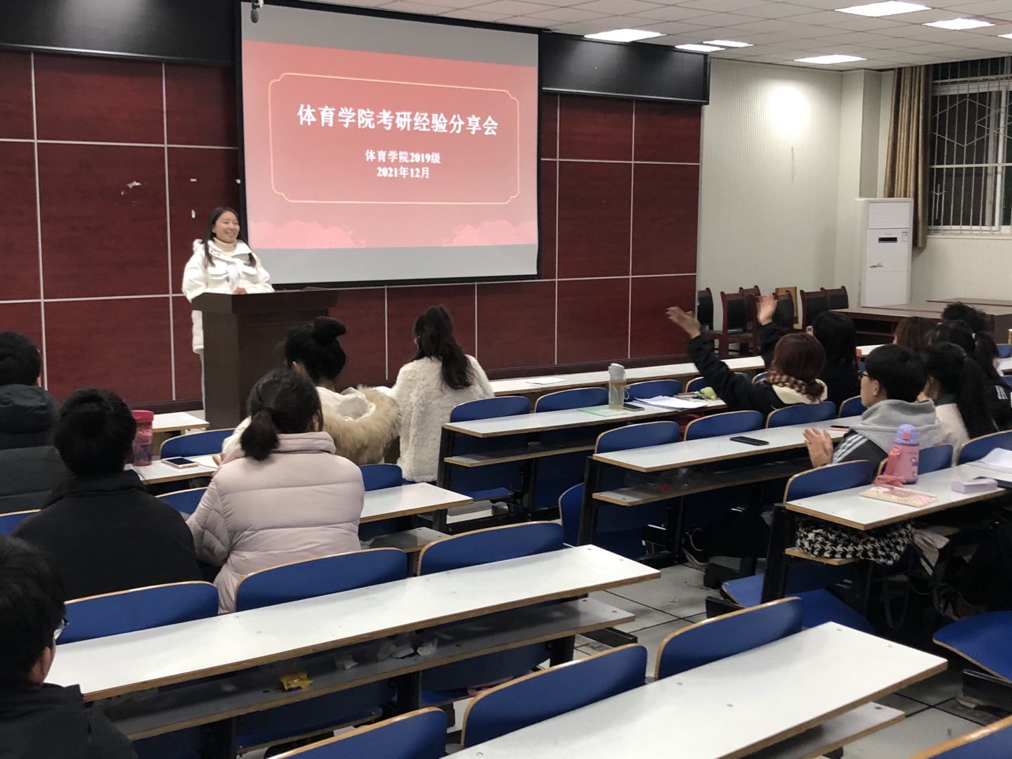 为加强学生对考研的了解,营造积极向上的学风,为想要考研的学子提供宝贵经验,12月8日晚,WilliamHill中文官方网站2019级在体育馆多媒体教室举行考研经验分享会,会议由2019级辅导员赖梦玥主持,2019级全体学生参加。