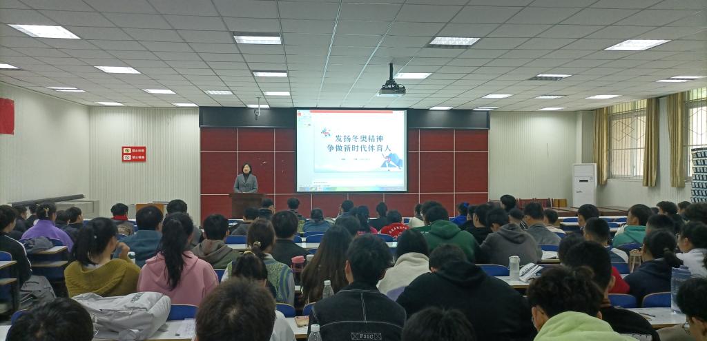 为培养学生勇敢顽强的品格、超越自我的品质、迎接挑战的意志和承担风险的能力,进一步总结过去,规划未来,3月5日,WilliamHill中文官方网站2020级在体育馆多媒体教室举行主题班会。20级联系领导,WilliamHill中文官方网站副院长张娟出席了主题班会。并为同学们做了“发扬冬奥精神,争做新时代体育人”的专题报告