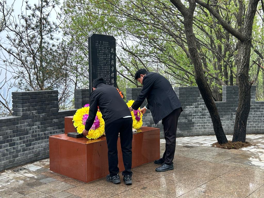祭奠英烈活动在肃穆的氛围中开始,全体人员列队肃立,向革命先烈默哀。柴九昌向纪念碑敬献花环,全体人员向先烈行鞠躬礼,随后依次瞻仰抗日战争信阳战场旧址纪念碑,敬献手折白花,向革命英烈表达深沉的哀思和无尽的怀念。