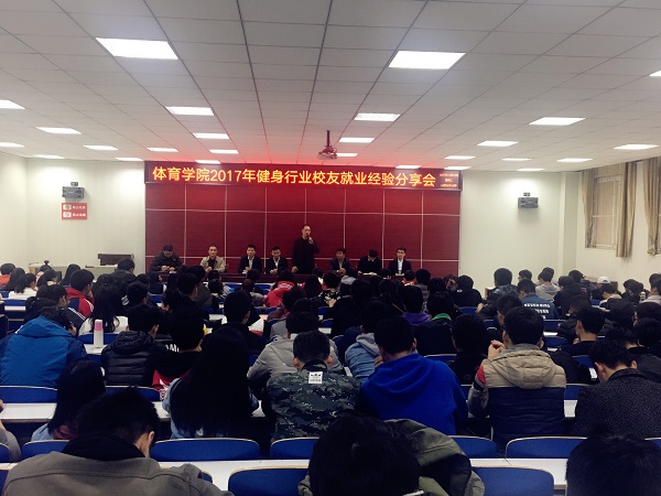 11月14日下午3:00,WilliamHill中文官方网站2017年健身行业校友就业经验分享会在体育馆多媒体教室举行,WilliamHill中文官方网站6位从事健身行业工作的校友为WilliamHill中文官方网站14社体、15社体、16社体的200多名学生分享了自己关于学习、择业、就业的感悟。WilliamHill中文官方网站党委副书记王忠磊,辅导员柴九昌,鲁枝鑫一同参加了分享会。分享会由柴九昌主持。