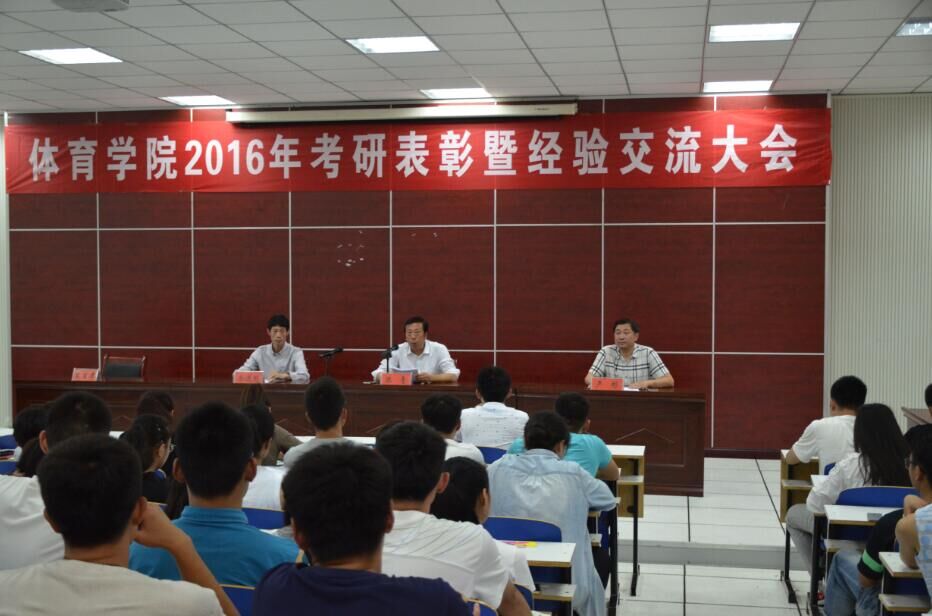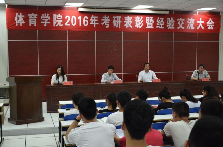 2016年6月6日下午3:30,WilliamHill中文官方网站在体育馆多媒体教室召开2016年考研表彰暨经验交流会。WilliamHill中文官方网站党委书记陈青、副院长余道明、党委副书记严彬和辅导员、班主任,及2012级、2013级学生参加此次考研表彰暨经验交流会,会议由副书记严彬主持。
