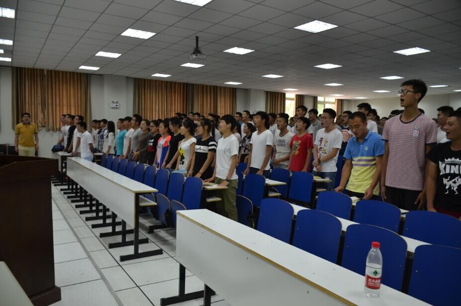 考研表彰暨经验交流会开始前,全体师生起立,奏唱国歌。