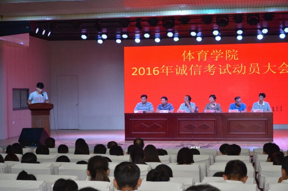 在会议开始前,全体起立,奏唱国歌。院长王小美介绍到会领导老师,并畅谈了考风考纪的严肃性和重要性,同时对诚信应考提出了要求和期望。接着,副书记严彬宣读我校关于重申考试纪律的相关文件和规定。随后,由大三学生代表刘恒嘉和大一学生代表张智豪做诚信考试、遵守考纪的发言。大一、大二、大三各班代表上交各班同学各班同学签写的诚信考试承诺书,并宣誓诚信作答。最后,书记陈青讲到“考试既是对每位同学学习成效的检验,更是对每位同学意志品质的考验。诚信考试是一种品行,更是一种责任;是一种道义,更是一种准则;是一种声誉,更是一种资源;这一点已得到了全社会的普遍认同,已成为评价人的必不可少的标准。作为当代大学生,我们是国家的希望,肩负着民族的未来,我们有责任和义务去建立和维护诚信公平的社会风气。考试是一种评价手段,它能检验教师教学和学生学习的效果,这对于学院正确地评价教师和学生具有极其重要的意义”。