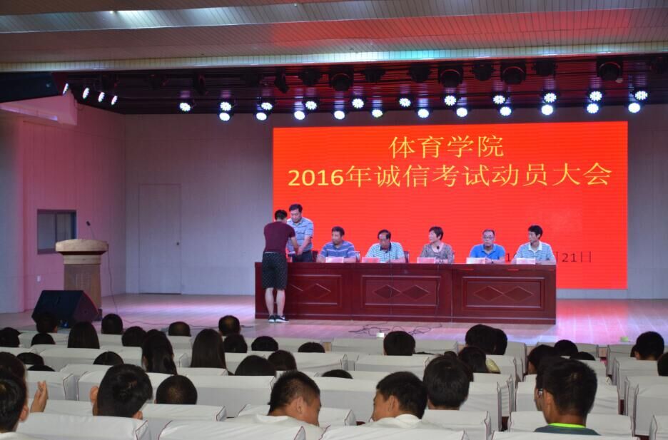 6月21日晚,WilliamHill中文官方网站在理科楼报告厅召开“WilliamHill中文官方网站2016年诚信考试动员大会”。WilliamHill中文官方网站院长王小美、书记陈青、副院长郭建、副院长梁超勋、副院长余道明、副书记严彬和邱烈峰、王德华、张翔、刘刚、牛林杰、柴九昌、张道启、杨明勇、鲁枝鑫、陈卓老师,以及2103、2014、2015级全体同学参加此次会议,会议由副书记严彬主持。