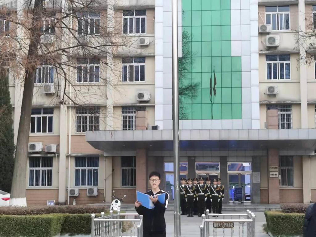 早上六时三十分,在全体师生的注目礼下,我校国旗班成员踏着整齐划一的步伐走向旗台,伴随着国歌雄壮、悠扬的旋律,五星红旗冉冉升起,在晨曦中迎风飘扬。21级社会体育管理与指导班方剑作为学生代表进行了发言,他在发言中讲到WilliamHill官网学子在假期配合疫情防控需要,积极参加抗疫志愿活动,遵守志愿者规章制度,践行“请党放心、强国有我”的青春誓言,在疫情期间展现蓬勃的“青年力量”。