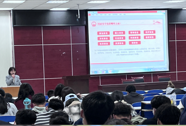 会上,师生共同观看了“千万师生同上一堂国家安全教育课”为主题的公开课。接着,赖梦玥老师从国家安全的内涵、当前国际国内形势、危害国家安全的行为及相关罪名、如何维护国家安全、谁来保卫国家安全等几个方面介绍了国家安全教育的相关内容。并带领同学们一起学习了《反分裂国家法》、《反间谍法》和《国家安全法》相关法律法规。