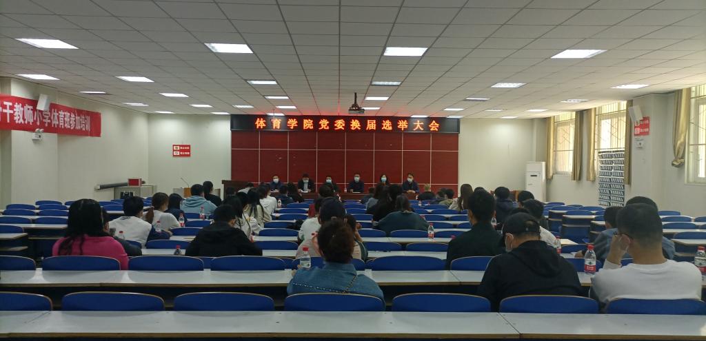 419日下午,体育学院党委换届选举党员大会在体育馆多媒体教室召开,学院全体教职工党员、学生党员参加大会。会议由体育学院党委副书记柴九昌主持。