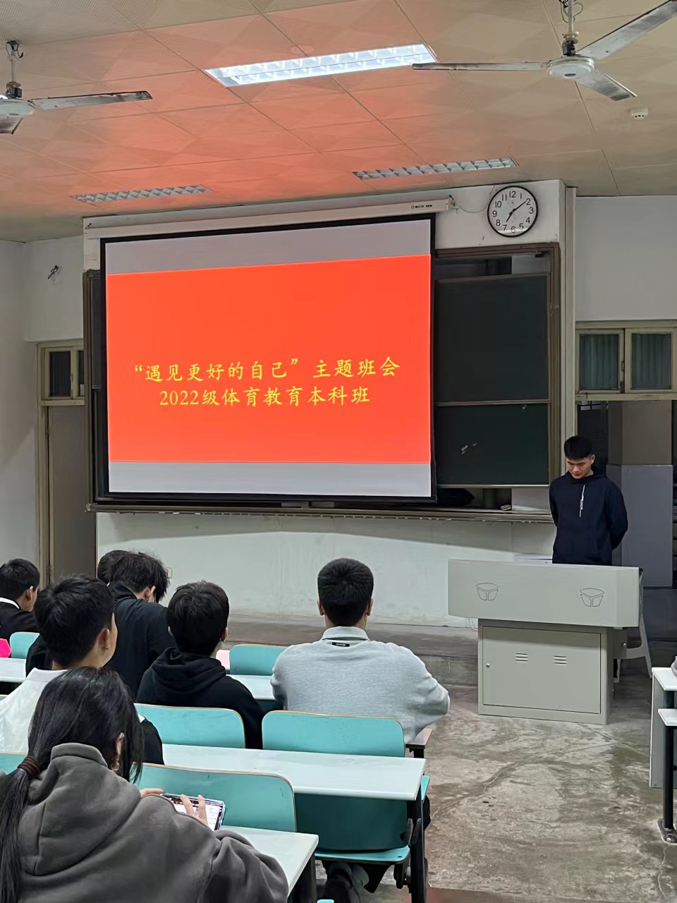 为了帮助同学们了解心理健康相关知识,关注自身心理健康状况,树立正确的心理健康观念,保持积极向上的心态,更好地适用学习和生活,3月16日晚,2022级体教班在109教室举行了以“遇见更好的自己”主题班会。