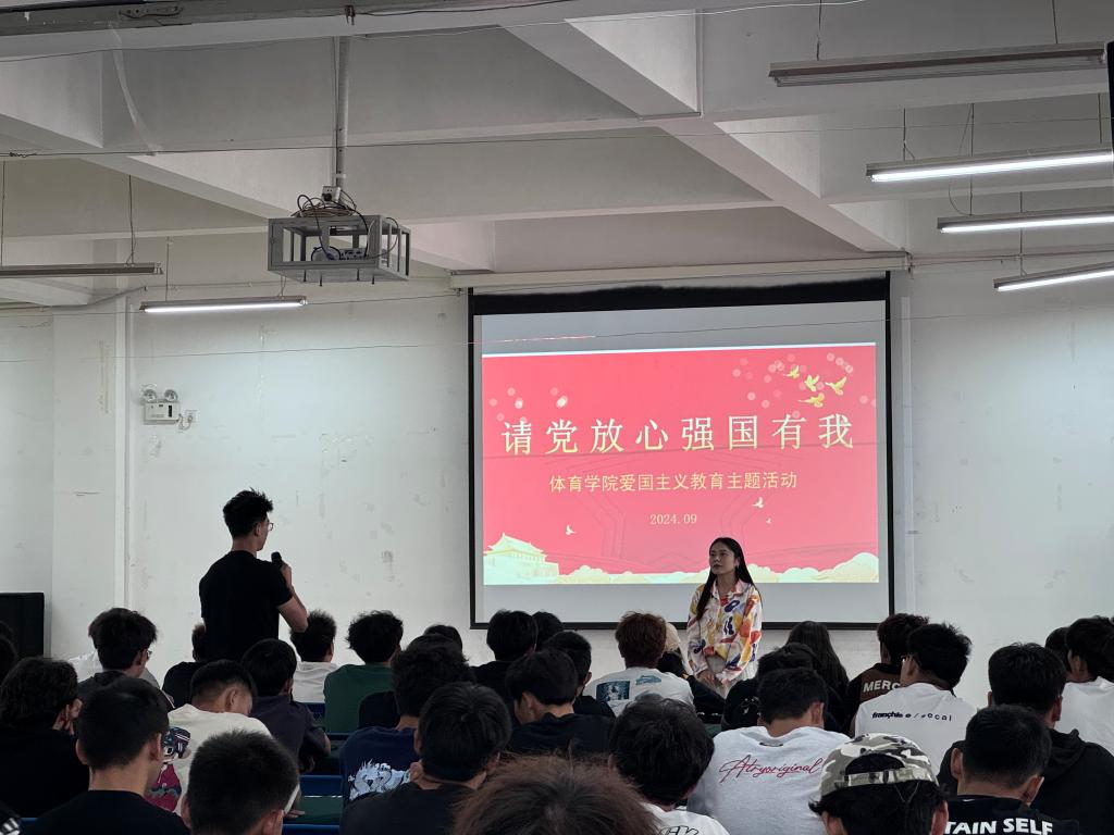 为进一步弘扬爱国主义精神,激发学生的爱国热情,9月21日,体育学院于“一站式”学生活动中心开展“请党放心,强国有我”为主题的爱国主义教育活动。学院2024级专职辅导员赖梦玥及全体新生参加本次活动。