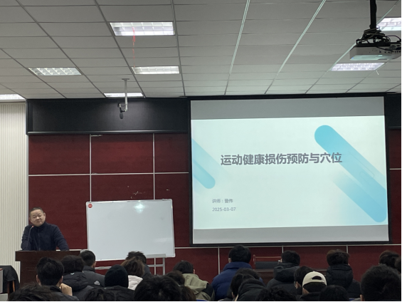 3月7日上午在体育馆多媒体教室进行了运动健康损伤与穴位的专题讲座。学院邀请校外专家晋伟老师主讲,2023级体育教育全体同学参与。