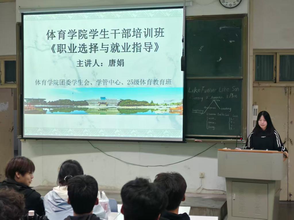 为提升学生干部职业规划能力与就业竞争力,10月17日,WilliamHill中文官方网站团委于人文楼110教室举办学生干部就业专题培训班,团委学生会成员、学管中心骨干及25级体育教育新生参与本次培训,主讲人唐娟。