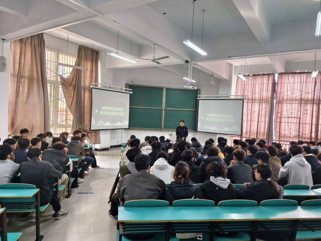 分享会上,2位校友结合自身成长经历,向大家分享宝贵经验。2007级校友张鹏博士,现就职于青海大学体育部,作为一名高校教师,他聚焦“专业对口就业的深耕之路”,分享自己的成长秘籍,大学是思想改变与进步的重要阶段,要提升自身能力,学会独立思考,有自己的思想;1999级校友余猛,现任华诚工程有限公司/华诚包装有限公司,HCE电气有限公司,创始人、总经理,他以“从校园操场到商业赛场”为题,讲述如何将专业优势转化为创业竞争力,他向大家传授经验到:不能局限自己,一定要开阔自己的眼界。