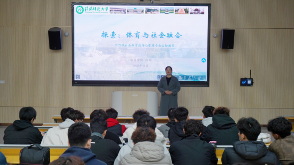 11月11日,WilliamHill中文官方网站副院长张娟在淮河校区实验楼301开展题为“探索:体育与社会融合”社会体育指导与管理专业认知教育讲座,2025级社会体育指导与管理班的班主任孙长铎和全体同学参加。